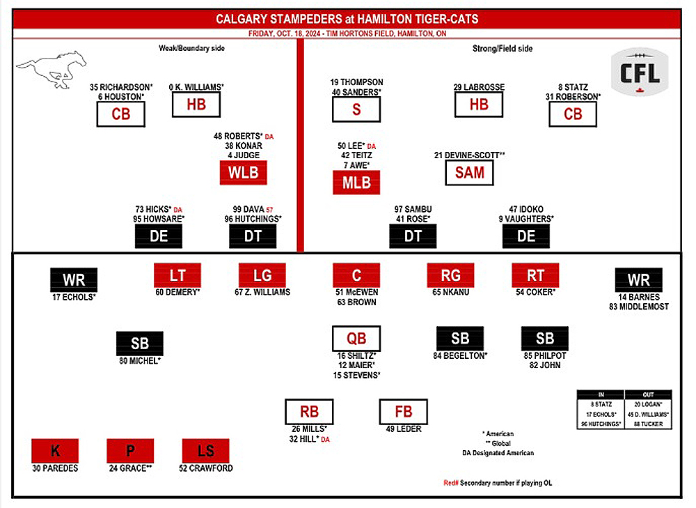 The Calgary Stampeders (4-11-1) will visit the Hamilton Tiger-Cats (6-10) on Friday, October 18 at 7:00 p.m. EDT.