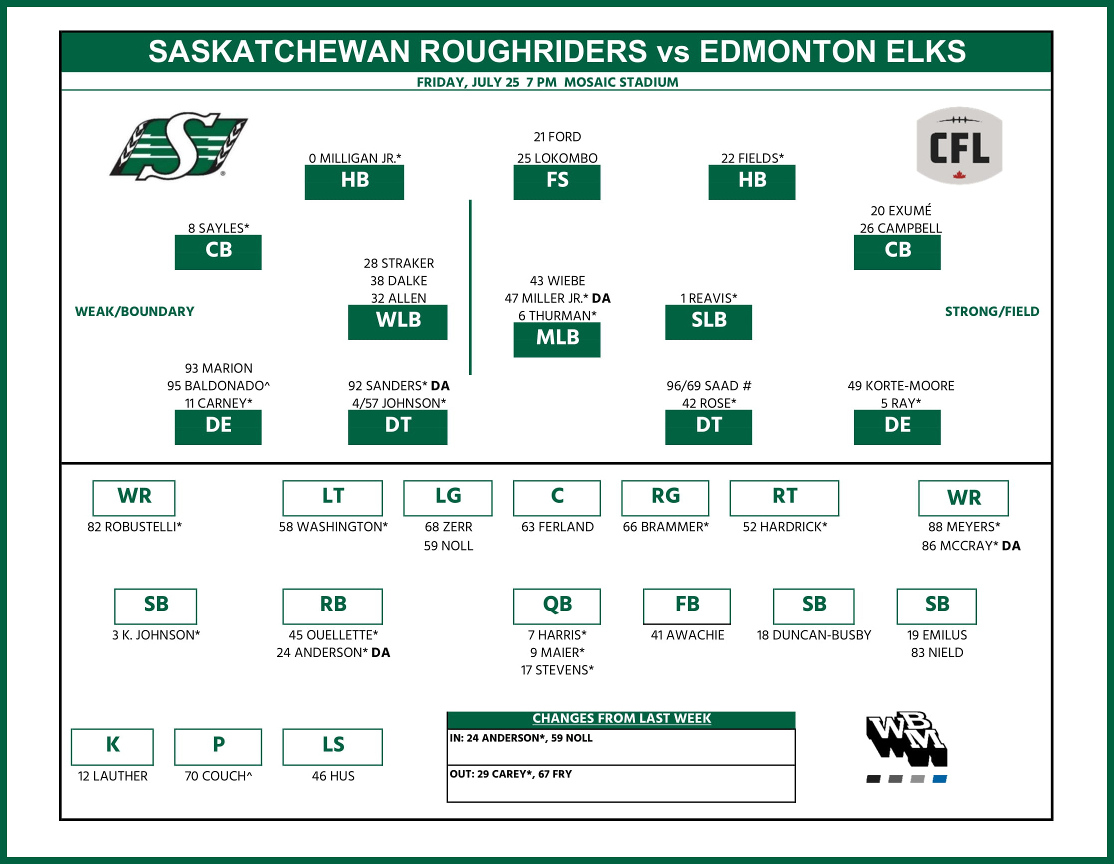 The Edmonton Elks (1-4) will visit the Saskatchewan Roughriders (5-1) at Mosaic Stadium on Friday, July 25 with kickoff slated for 9:00 p.m. EDT. The Elks are coming off their second bye week of the season, while Saskatchewan beat the B.C. Lions on the road last week by a score of 33-27.